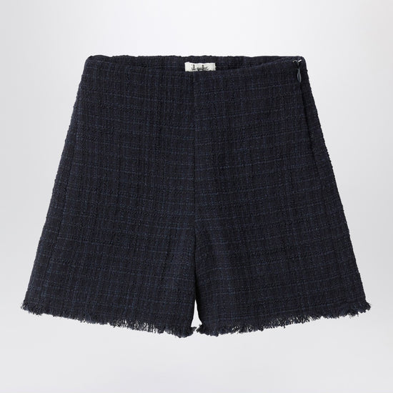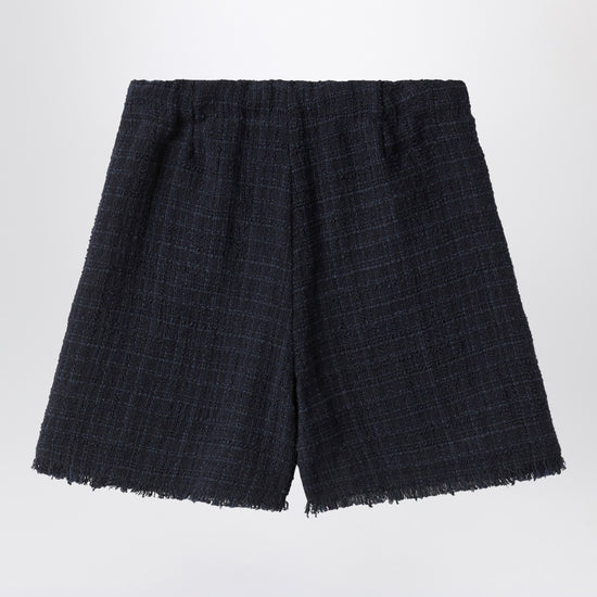 Shorts by Il Gufo in blue tweed, characterized by a fringed profile, side zip closure, and adjustable elastic waistband.