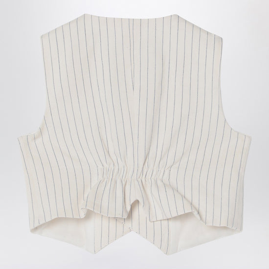 Double-breasted gilet by Il Gufo in milk white cotton blend with pinstripe pattern, characterized by front buttoning, V-neck and elastic detail on the back.