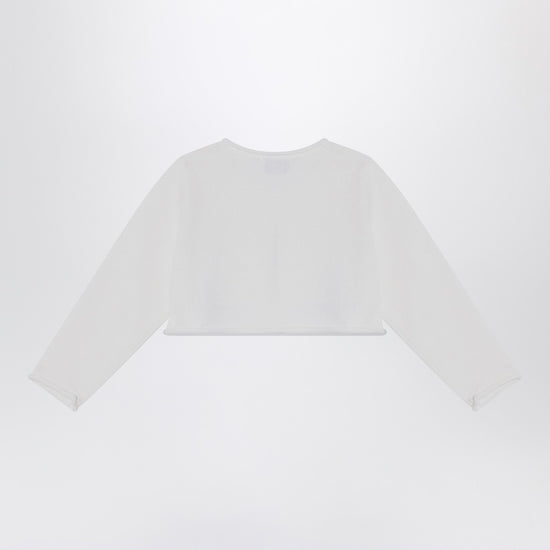 Short cardigan warm heart by Il Gufo in milk white cotton, characterized by long sleeves and a round neck with a button on the front.