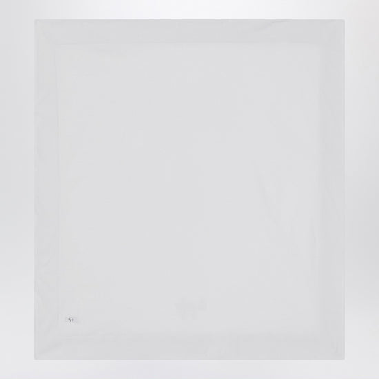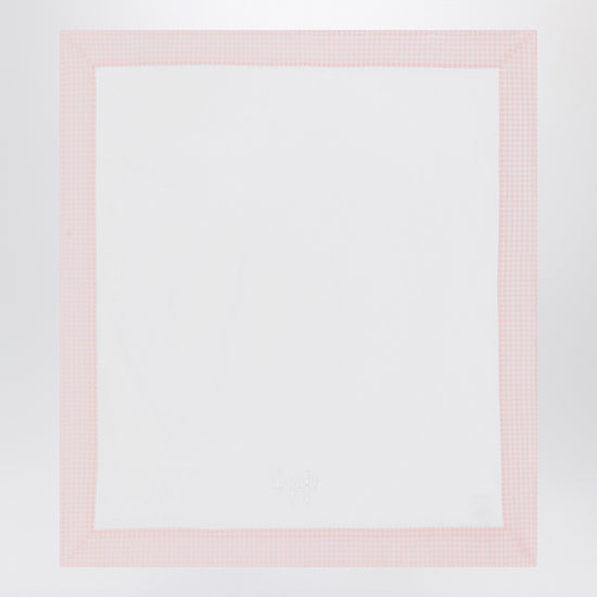 Cover of Il Gufo in white cotton, characterized by a seersucker border with pink checks and tone-on-tone embroidered logo lettering.