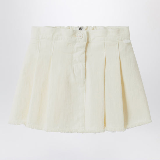 Il Gufo skirt in milk-white cotton denim, featuring front zip and button fastening, adjustable waistband with button, darts and frayed profile.