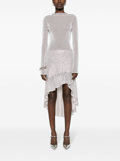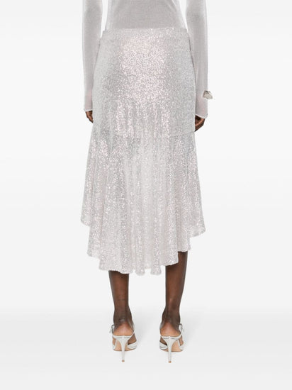 silver-tone mesh design sequin embellishment stretch-design partial lining ruffle asymmetric hem concealed side zip fastening Asymmetric midi skirt Size and Fit -  This piece fits true to size. We recommend you get your regular size<br>Model is 1,75m / 5ft 8in wearing size 36 (FR).