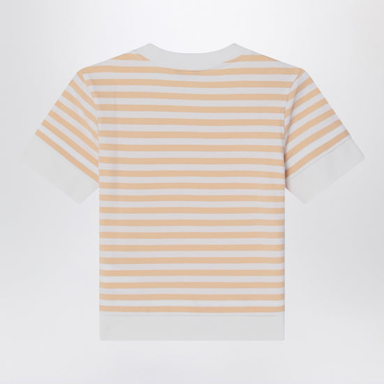 K-Way crew neck T-shirt in a cotton blend with white and beige stripes, featuring short sleeves, double hem on the collar, sleeves, and bottom, silicone logo patch on the chest, and regular fit.