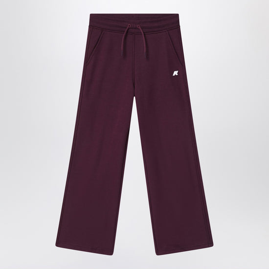 Purple cotton K-Way sporty flared trousers featuring a ribbed elasticated waistband with drawstring, two side welt pockets and logo patch on the front.