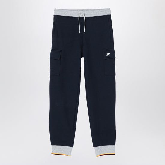 Blue cotton-blend jogging trousers from K-Way, featuring an elasticated waistband with drawstring, two side welt pockets, a patch pocket on the back, two patch cargo pockets with logo patch flaps on the sides and contrasting ribbed hems. Size and Fit - Bei max. 30° C waschen - Nicht bleichen - Nicht im Trockner trocknen - Mit einer Höchsttemperatur von 110° C bügeln - Schonende professionelle Trockenreinigung mit Tetrachlorethylen