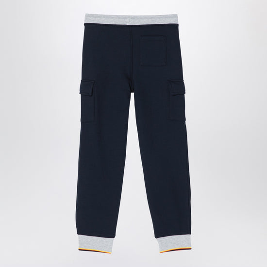Blue cotton-blend jogging trousers from K-Way, featuring an elasticated waistband with drawstring, two side welt pockets, a patch pocket on the back, two patch cargo pockets with logo patch flaps on the sides and contrasting ribbed hems.