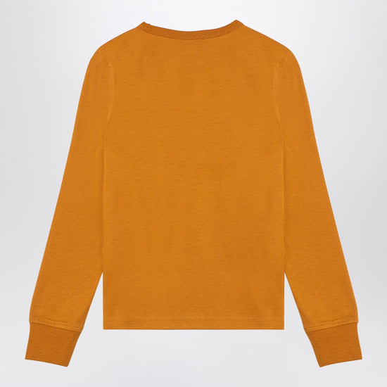 Yellow cotton jersey crew-neck T-shirt from K-Way featuring long sleeves with ribbed cuffs, logo patch on chest and straight hem.