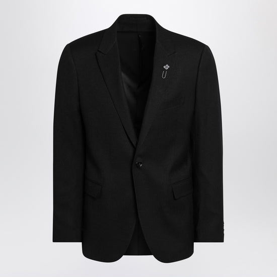 Lardini jacket in a black virgin wool blend, characterized by a notch lapel, long sleeves with buttoned cuffs, a welt pocket on the chest, two flap pockets, and a back vent. Size and Fit - Model wears size 50 IT Model measurements: Height: 187 cm Chest: 102 cm Waist: 76 cm Hips: 92 cm