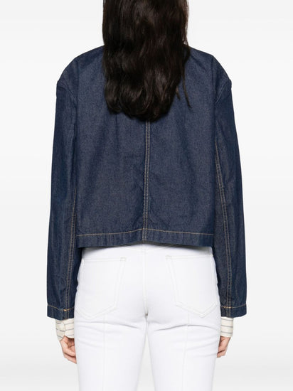 blue cotton signature Fox detail front patch pocket front button fastening long sleeves point collar Cropped denim jacket