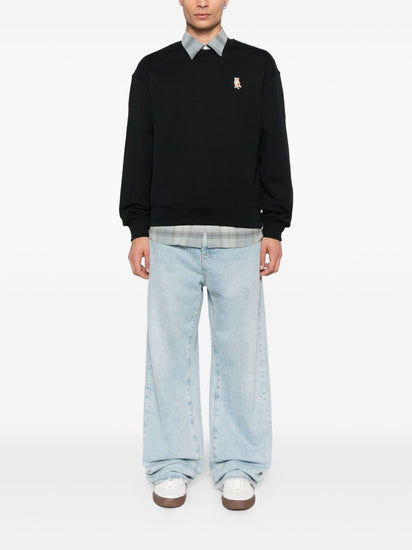 black cotton material crew neck fox embroidery long sleeves ribbed cuffs Standing Fox cotton sweatshirt