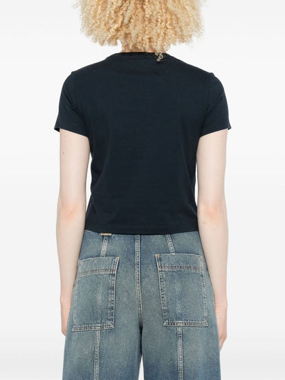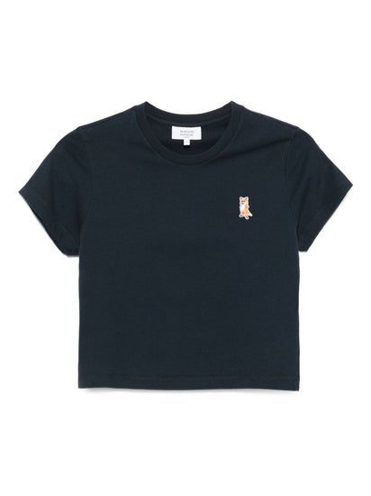classic navy short sleeves crew neck cropped embroidered fox cotton material Lady Fox cotton t-shirt