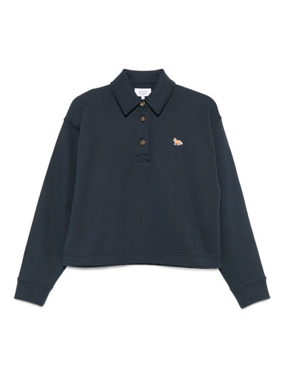 navy fox embroidery polo collar button fastening long sleeves Baby Fox cotton polo sweatshirt