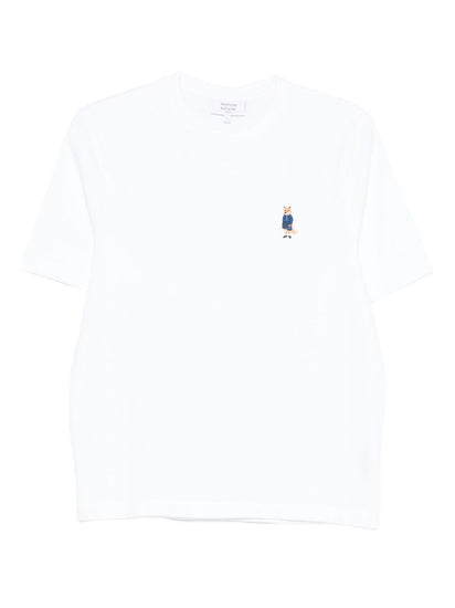 white short sleeves crew neck embroidered detail fox motif cotton material Dressed Fox cotton t-shirt