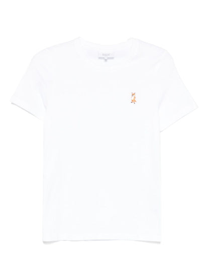 white short sleeves crew neck embroidered-fox detail cotton material Lady Fox cotton t-shirt