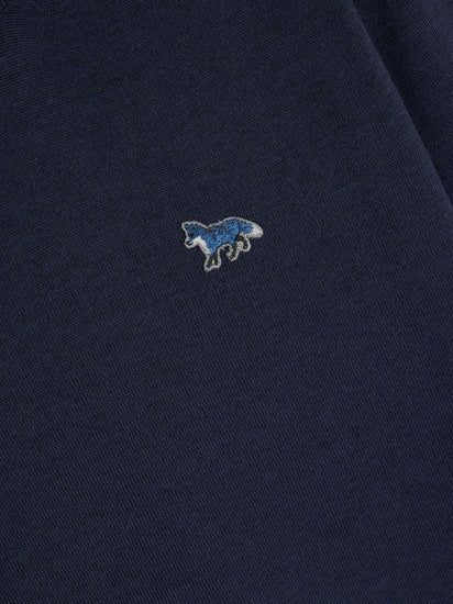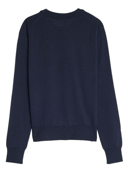 navy blue merino wool knitted construction ribbed-knit edge mélange effect signature fox motif logo patch at the chest crew neck long sleeves ribbed cuffs and hem straight hem Baby Fox wool jumper Size and Fit - This piece fits true to size. We recommend you get your regular size. Model is 1,75m / 5ft 8in wearing size S