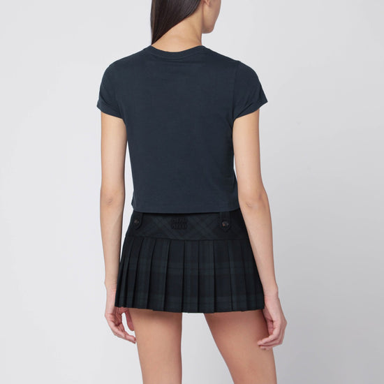 Maison Kitsuné Navy cropped T-shirt with logo patch