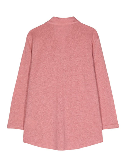 rose pink linen blend jersey texture slub texture classic collar long sleeves front button fastening straight hem unlined This item contains at least 50% materials which are certified or widely recognised as having a lower environmental impact through production and/or manufacturing processes that reduce water consumption and the use of harmful chemicals, or re-use by-products of the production process. Learn more about what makes a product Conscious on our Conscious Criteria page 3/4 sleeve linen shirt Size and Fit - This piece fits true to size. We recommend you get your regular size. Model is 1,75m / 5ft 8in wearing size 1 (NUM)