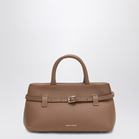 Small hand bag by Manu Atelier in hammered leather color Mocha Mousse, characterized by double handle, adjustable strap with buckle, magnetic closure, internal zip pocket with logo and suede lining. Size and Fit - Width 25 cm x Height 15 cm x Depth 17 cm Handle drop: 15 cm
