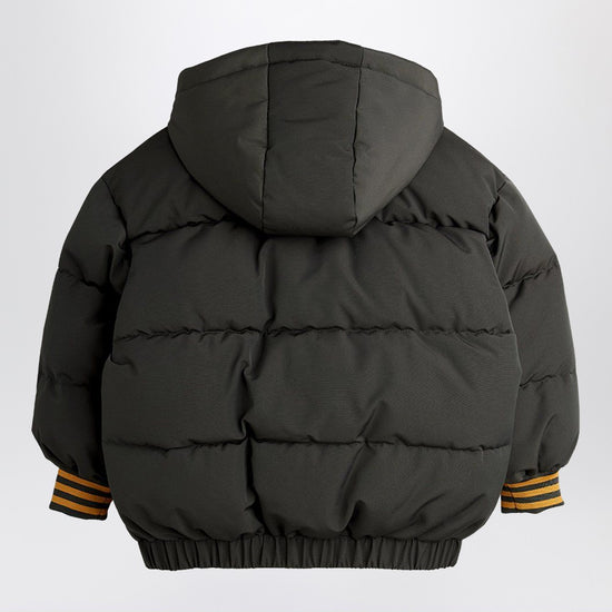 Mini Rodini puffer jacket for boys with a matt finish made from recycled polyamide with a water-repellent coating, designed with two pockets, removable hood and soft satin lining.