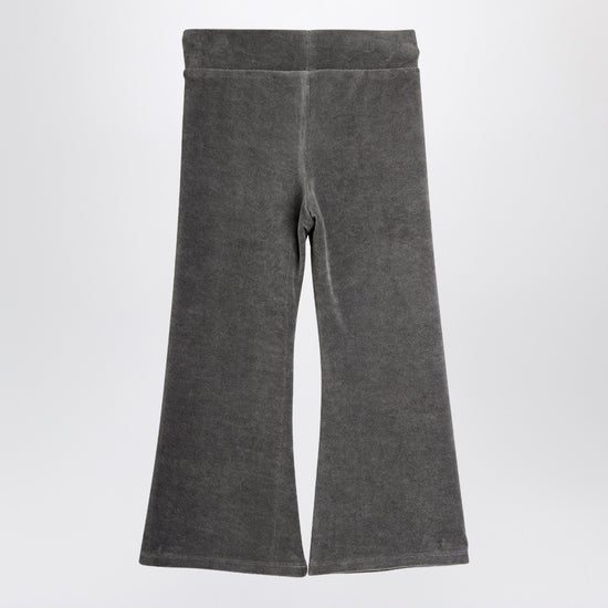 Gray organic cotton blend velvet flared pants by Mini Rodini, featuring an elasticated waist and an embroidered four-leaf clover on the front.
