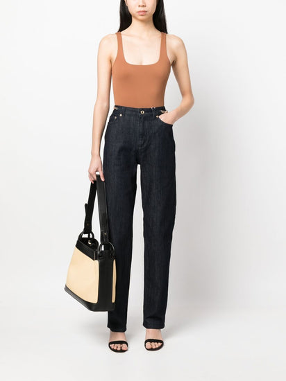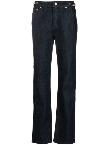 straight-leg chain-detail jeans from MICHAEL MICHAEL KORS featuring indigo blue, cotton blend, denim, chain-link detailing, logo plaque, classic five pockets, concealed fly and button fastening, belt loops, straight leg and straight hem. Cropped denim jeans Size and Fit - This piece fits true to size. We recommend you get your regular size. Model is 1,75m / 5ft 8in wearing size 4 (US)