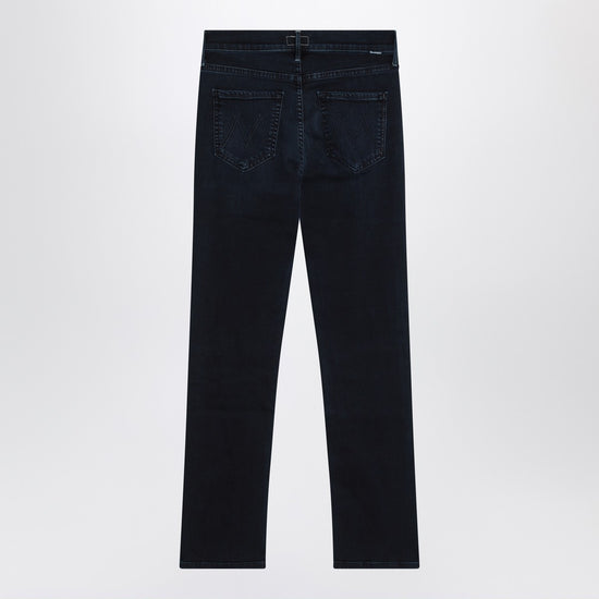 Straight jeans by Mother in dark blue cotton denim with a slightly faded effect, characterized by a front closure with zip and button, belt loops, five classic pockets, a small logo patch on the back, and an embroidered logo on the back pockets. Size and Fit - Model wears size 26 Model measurements: Height: 178 cm Chest: 89 cm Waist: 62 cm Hips: 88 cm