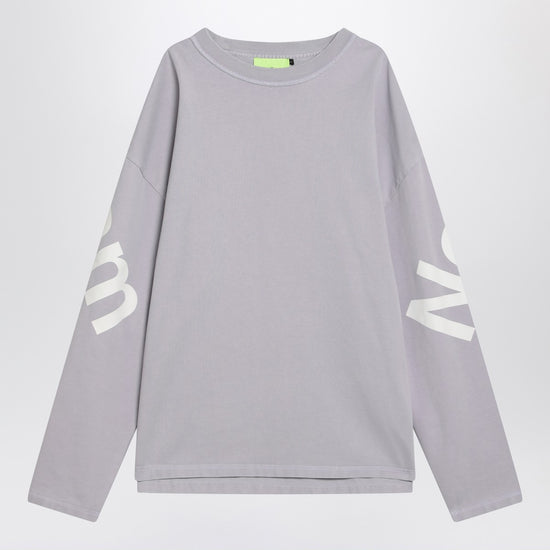 New Amsterdam Surf Association T-shirt in lavender cotton, featuring long sleeves, contrasting logo lettering print on the back, ribbed crew neck, and oversized fit. Size and Fit - Model wears size L Model measurements: Height: 189 cm Chest: 104 cm Waist: 78 cm Hips: 95 cm