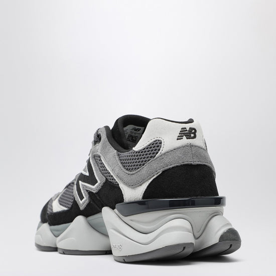 New Balance sneakers in black and grey fabric and suede, characterized by contrasting details, round toe, lace-up closure, side N patch, branded heel and tongue, and rubber sole.