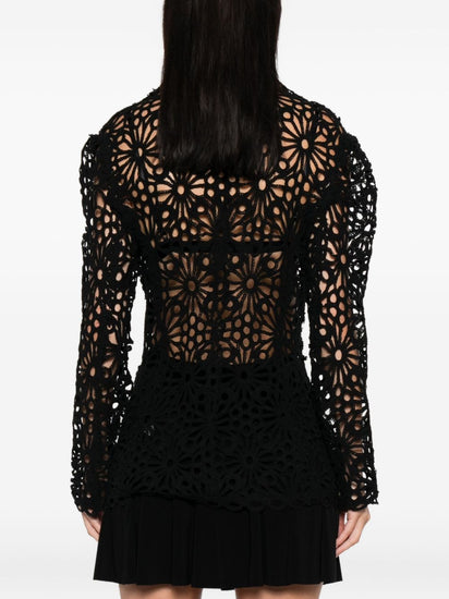 black floral motif single-breasted Lace single-breasted blazer jacket Size and Fit - This piece fits true to size. We recommend you get your regular size. Model is 1,75m / 5ft 8in wearing size S
