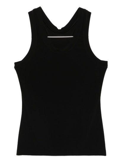 black sleeveless straight hem fitted bodice Sleeveless top Size and Fit - This piece fits true to size. We recommend you get your regular size. Model is 1,75m / 5ft 8in wearing size S