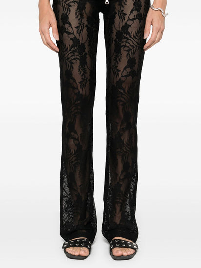 black elasticated waistband semi-sheer construction lace detailing Lace skinny trousers Size and Fit - This piece fits true to size. We recommend you get your regular size. Model is 1,75m / 5ft 8in wearing size S