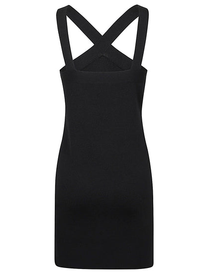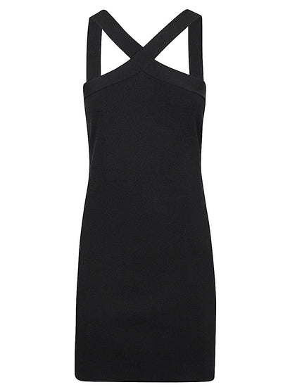 Short, black, solid color dress with wide crossover straps and straight hem. Viscose blend dress Size and Fit - This piece fits true to size. We recommend you get your regular size. Model is 1,75m / 5ft 8in wearing size S