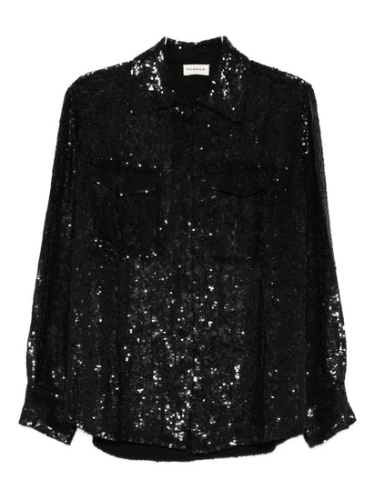 black sequinned long sleeves button fastening flap pockets Sequined shirt
