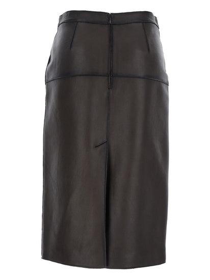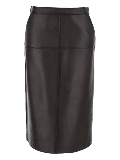 black lambskin midi length panelled concealed zip fastening straight hem Leather midi skirt