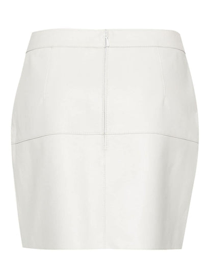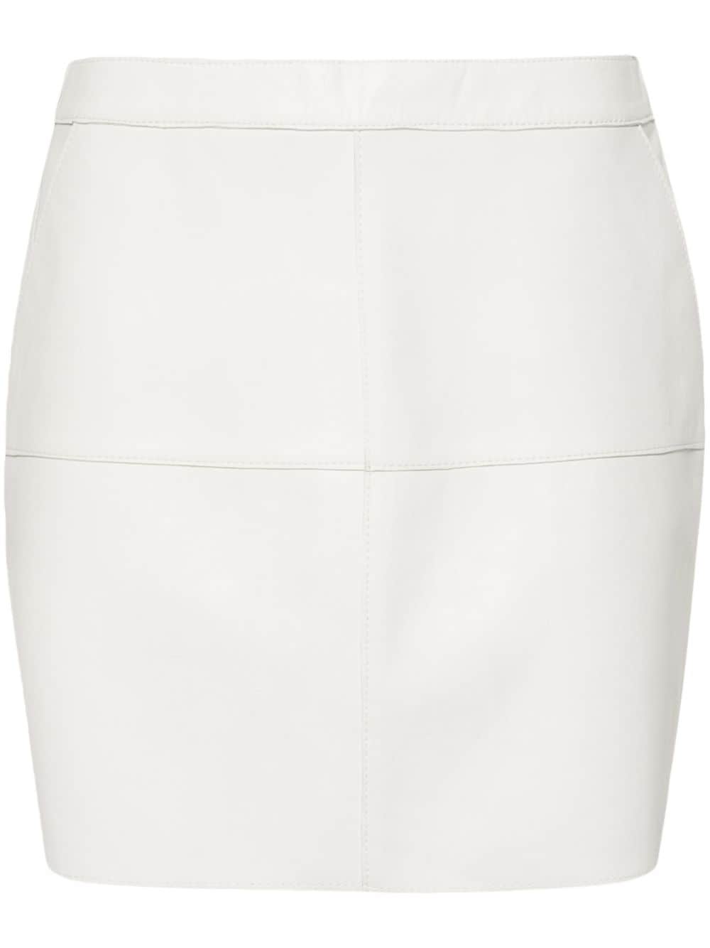 white leather panelled design mid-rise concealed rear hook and zip fastening two diagonal pockets to the sides straight hem thigh-length Leather mini skirt Size and Fit - This piece fits true to size. We recommend you get your regular size. Model is 1,75m / 5ft 8in wearing size S