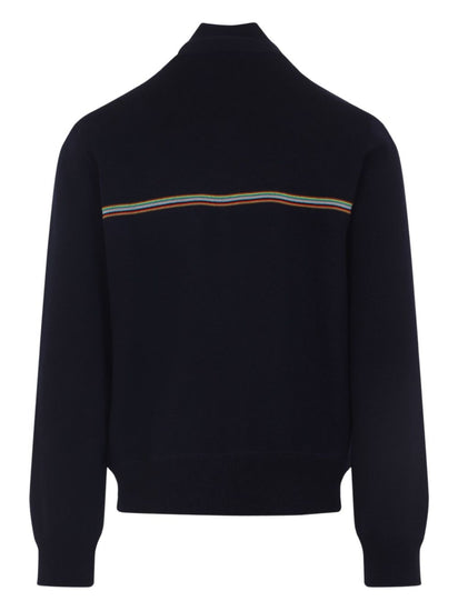 navy blue zip fastening high neck ribbed cuffs striped detailing wool Wool bomber jacket