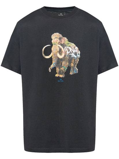 black crew neck short sleeves graphic print to the front Graffiti Mammoth cotton t-shirt Size and Fit - This piece fits true to size. We recommend you get your regular size. Model is 1,84m / 6ft 1in wearing size M