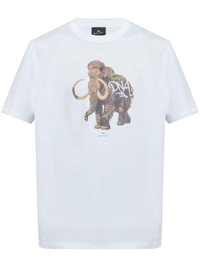 white crew neck short sleeves Graffiti Mammoth cotton t-shirt Size and Fit - This piece fits true to size. We recommend you get your regular size. Model is 1,84m / 6ft 1in wearing size M