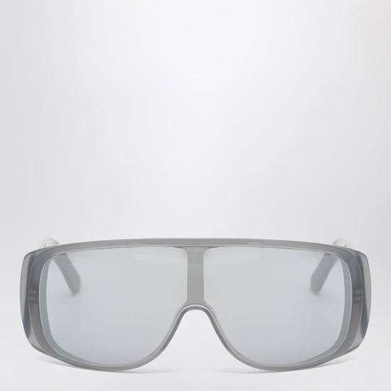 Retrosuperfuture sunglasses made in collaboration with MM6 Maison Margiela, featuring grey acetate frames, characterized by a mask design and Numeric logo engraved on the temples.