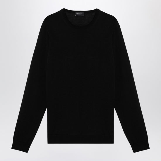 Crew-neck sweater by Roberto Collina in black-coloured merino wool, featuring ribbed collar, cuffs and hem and regular fit. Size and Fit - Model wears size 48 IT Model measurements: Height: 188 cm Chest: 100 cm Waist: 76 cm Hips: 96 cm