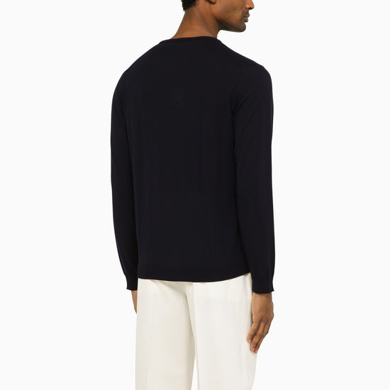 Crew-neck sweater by Roberto Collina in navy blue cotton, featuring a ribbed collar, cuffs and hem and a regular fit. Size and Fit - Model wears size 48 IT Model measurements: Height: 187 cm Chest: 102 cm Waist: 76 cm Hips: 92 cm
