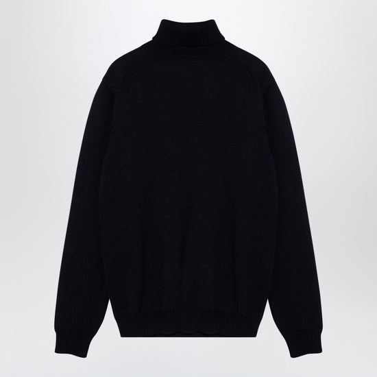 Turtleneck pullover by Roberto Collina in navy-coloured merino wool, featuring ribbed collar, cuffs and hem and regular fit. Size and Fit - Model wears size 48 IT Model measurements: Height: 188 cm Chest: 100 cm Waist: 76 cm Hips: 96 cm
