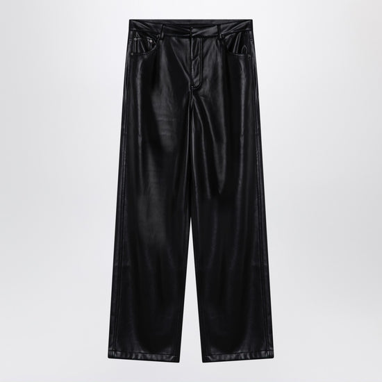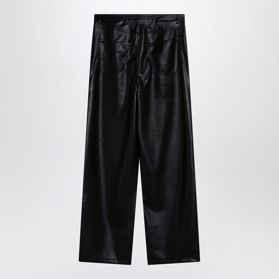 Black faux leather trousers from Rotate featuring a front zip and hook-and-eye fastening, a high waist, five classic pockets, belt loops and tone-on-tone embroidered lettering on the back. Size and Fit - Model wears size 36 DK Model measurements: Height: 178 cm Chest: 77 cm Waist: 60 cm Hips: 87 cm