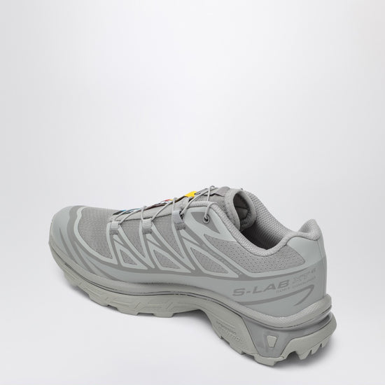 Salomon low-top sneaker in technical fabric colour Ghost Grey, featuring elastic lace closure, rounded toe, logo print on the upper, and rubber sole.