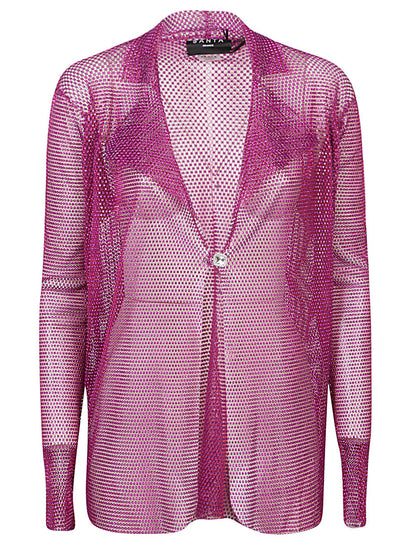 Fuchsia jacket, button closure, long sleeves, disconnect, transparent. Single-breasted blazer jacket Size and Fit - This piece fits true to size. We recommend you get your regular size. Model is 1,75m / 5ft 8in wearing size UNI