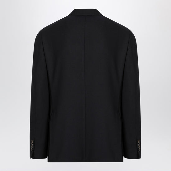 Blue wool blend single-breasted jacket from Santaniello featuring long sleeves with buttoned cuffs, classic lapels, a welt pocket on the chest, two patch pockets on the front and a front button placket.