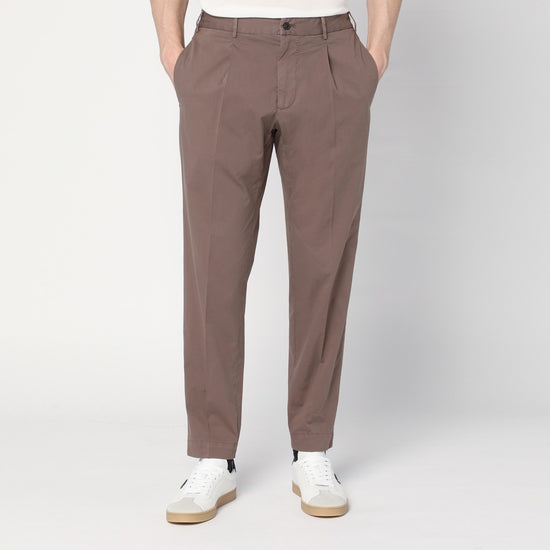 Santaniello cotton trousers in dove grey, characterized by a front closure with zip and button, elasticized waistband with belt loops at the back, two side welt pockets, two flap pockets with button at the back, and a crease at the front. Size and Fit - Model wears size 48 IT Model measurements: Height: 187 cm Chest: 100 cm Waist: 79 cm Hips: 96 cm