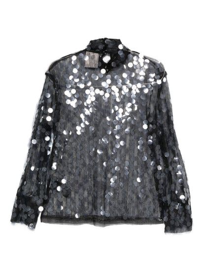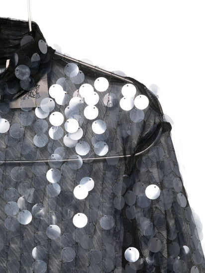 black/grey sequin embellishment high neck long sleeves sheer finish
