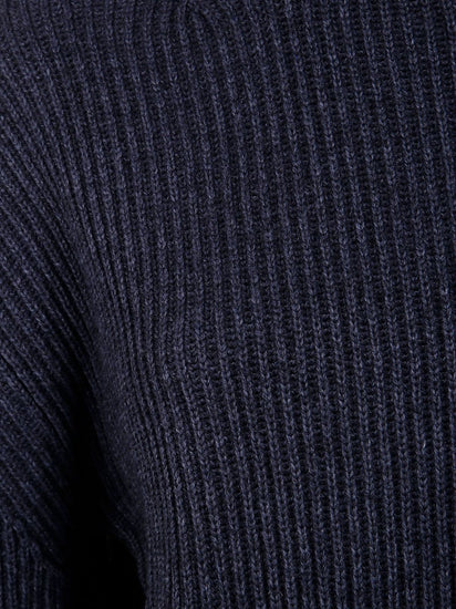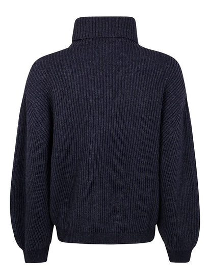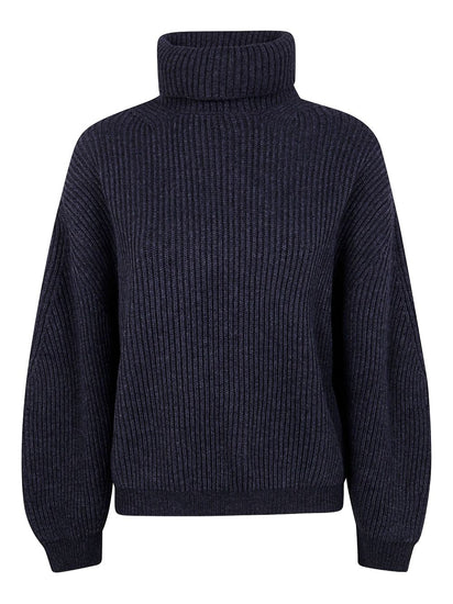 charcoal grey roll neck ribbed texture balloon sleeves relaxed fit wool cashmere blend