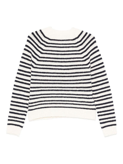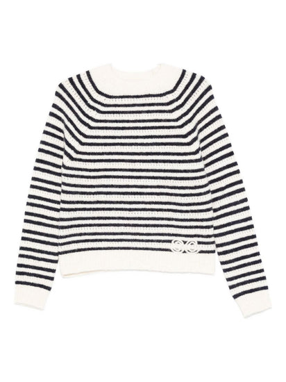 white and blue stripe pattern logo detail round neck long sleeves ribbed hem Morgana wool blend jumper